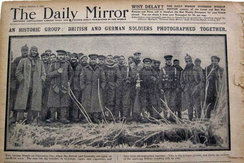 Разменят немски пури и кейк за британски цигари и коледен пудинг, пеят познати коледни песни на два езика.