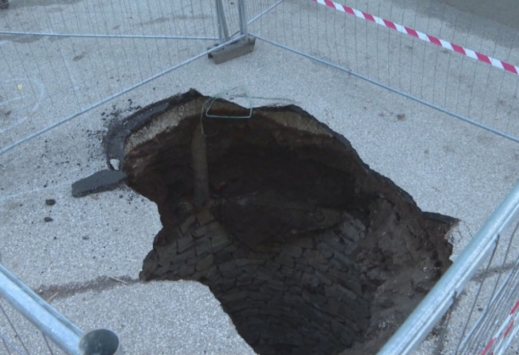 Пропадна асфалта в центъра на Враца и зейна огромна дупка/виж снимката/!