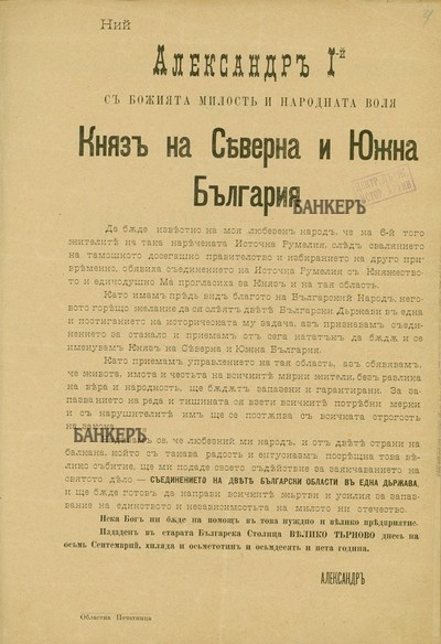 с който признава Съединението на България.