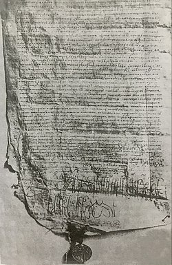 Най-долу на пергамента е прикачен за копринени нишки