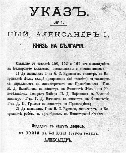 Княз Александър Батенберг още с първия си Указ № 1.