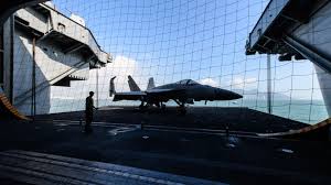 Излитане на самолет от палубата на кораб.